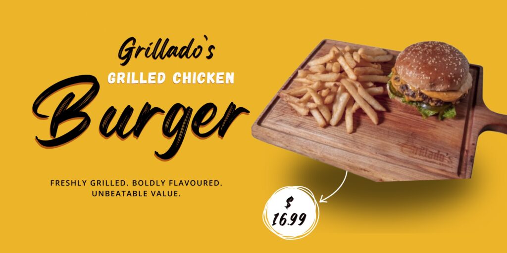 Want a juicy, flavorful and perfectly grilled burger? The Grilled Chicken Burger Meal at Grillado is your perfect destination to