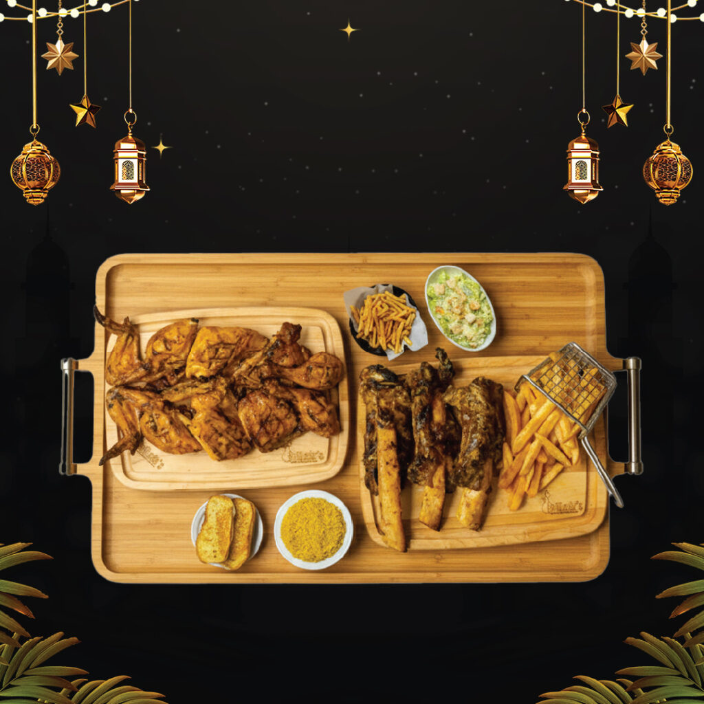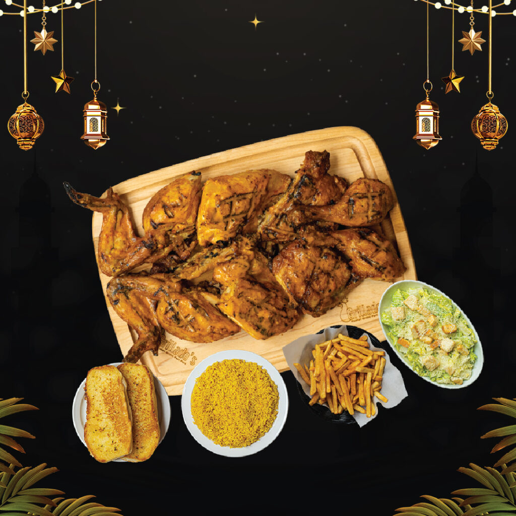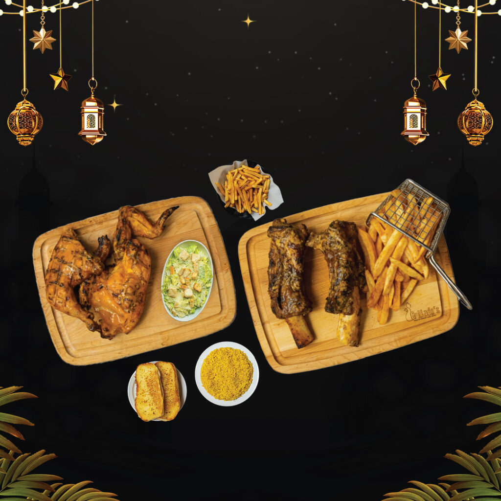 Offres spéciales Ramadan 1 poulet entier Riz, frites, salade, pain à l’ail $ 51.98 Burger de bœuf Servi avec du riz – Bœuf canadien AAA premium $ 49.99 Espetada grillée Achetez 3 espetadas et obtenez la 4ᵉ Gratuit Servi avec du riz et des frites $ 83.97 Un demi-poulet et 2 côtes Riz, frites, salade, pain à l’ail $ 59.99 Poulet entier et 4 côtes Riz, frites, salade, pain à l’ail $ 99.99 Restez informés de toutes nos Grillado’s Actualités, abonnez‑vous à notre newsletter Soyez les premiers informés des actualités et événements de Grillado’s, abonnez‑vous à notre newsletter et restez connectés !