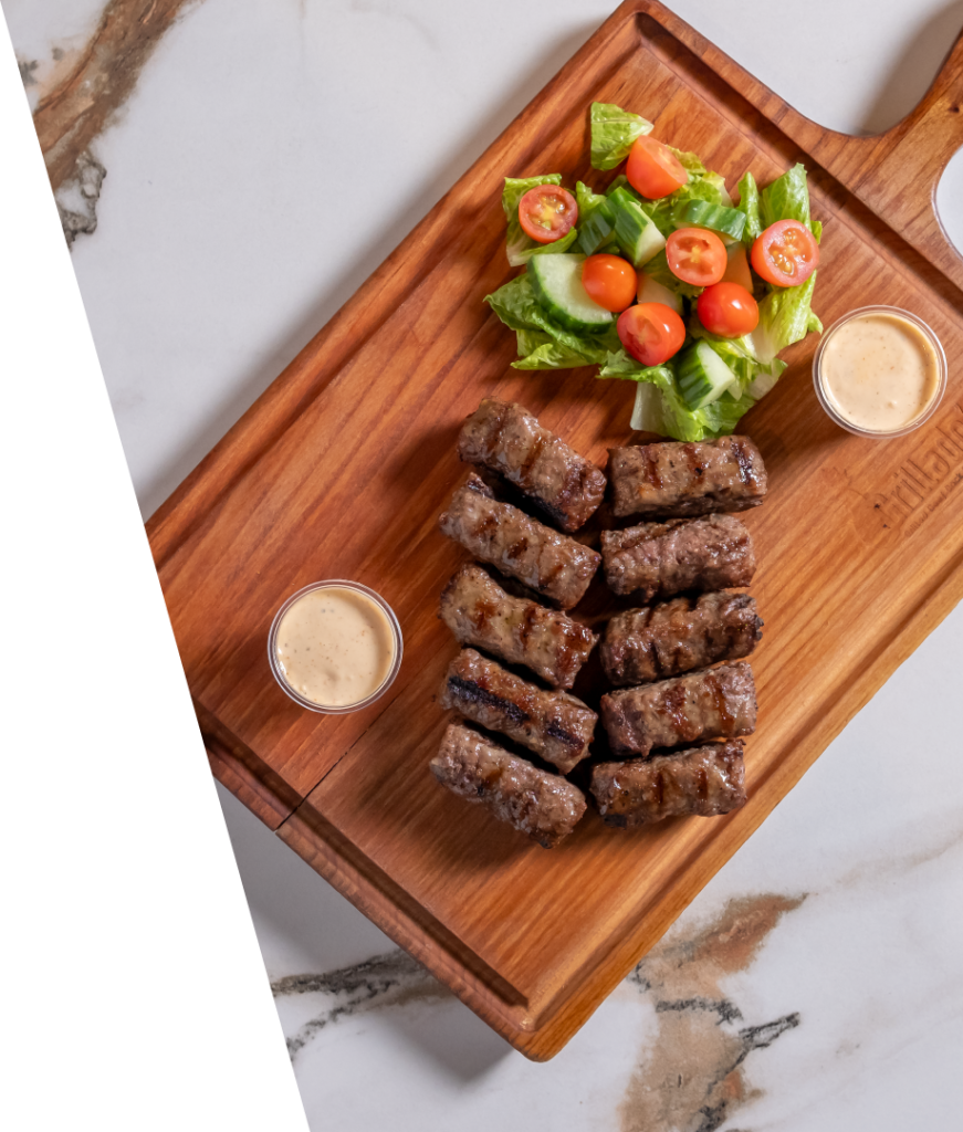 5 MOZZARELLA CHEESE STICKS, 1 ORGANIC WHOLE GRILLED CHICKEN, 10 WHOLE CHICKEN WINGS, 10 MINI BEEF KEBABS, 2 GRILLED ESPETADA SKEWERS, 3 LARGE SIDES, 3 GARLIC BREAD OR 4 PORTUGUESE BUNS